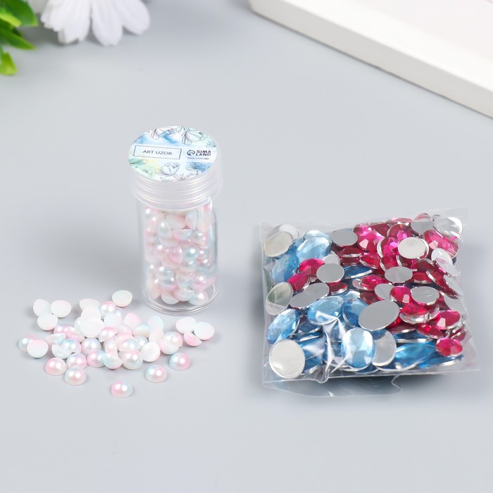 Декор «Полубусины и стразы. Градиент розово-голубой», d=6 мм, 10 г, 200 шт., 5×2.5 МИКС — Характеристики
