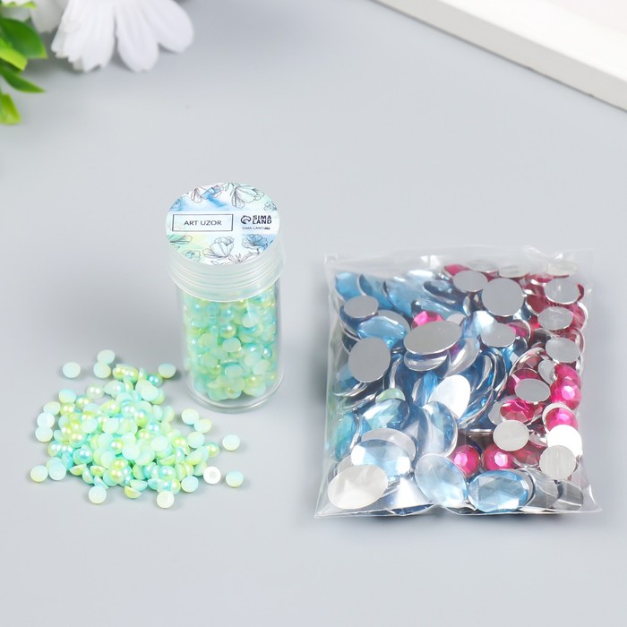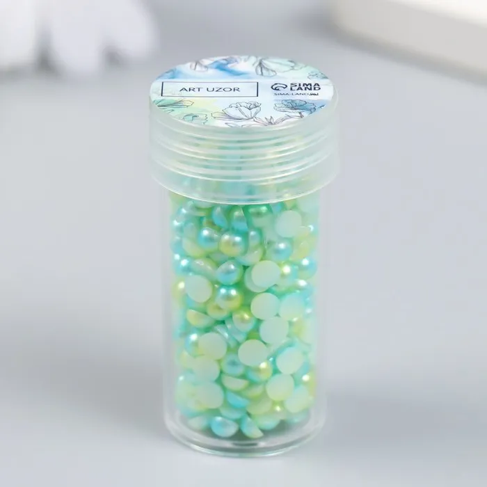 Декор «Полубусины и стразы. Градиент зелёно-голубой», d=4 мм, 10 г, 200 шт., 5×2.5 см, МИКС — Характеристики