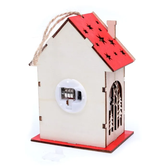 Изделие выполнено из экологичного материала — дерева и работает от батареек.