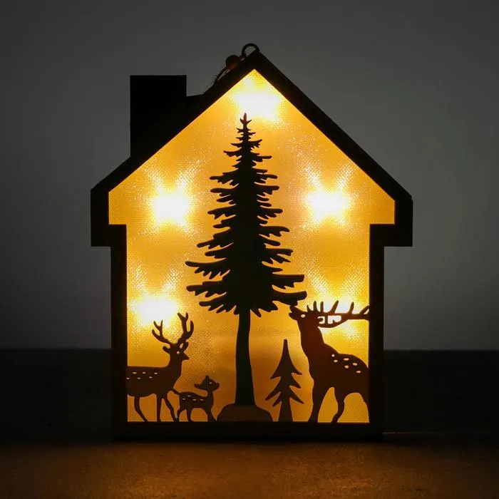 Новогодний декор с подсветкой «Домик» — это изысканный декор, который придаст вашему дому уютную атмосферу зимнего праздника. Благодаря подсветке это украшение будет ярким акцентом на вашем праздничном столе. Композиция выполнена из натуральных материалов, что делает её отличным выбором для украшения интерьера в классическом или скандинавском стиле.