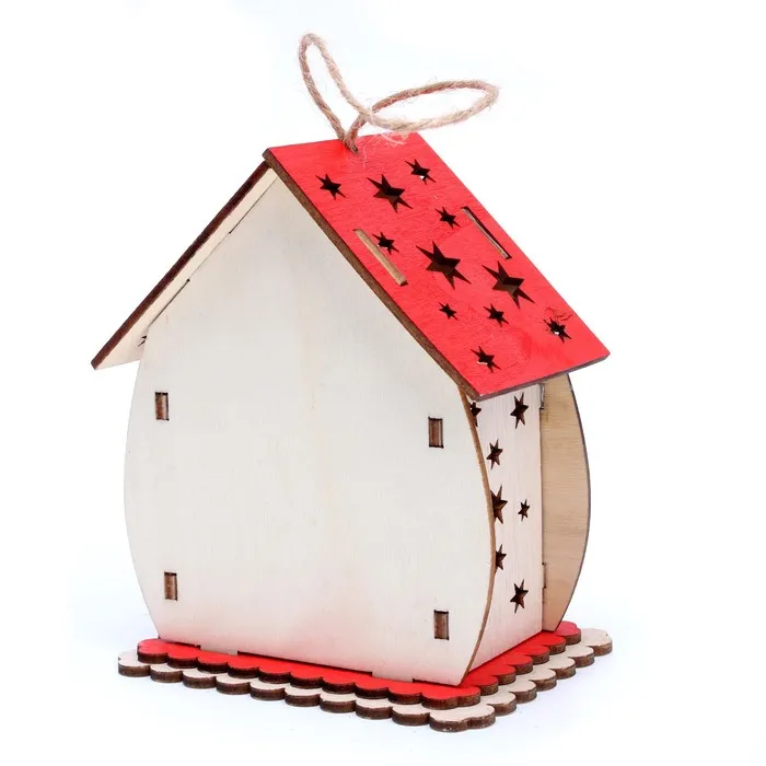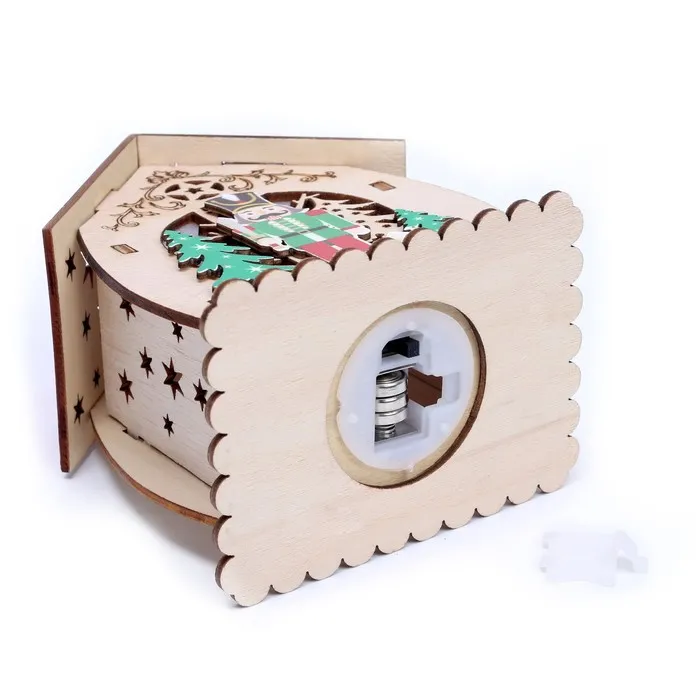 Изделие выполнено из экологичного материала — дерева и работает от батареек.
