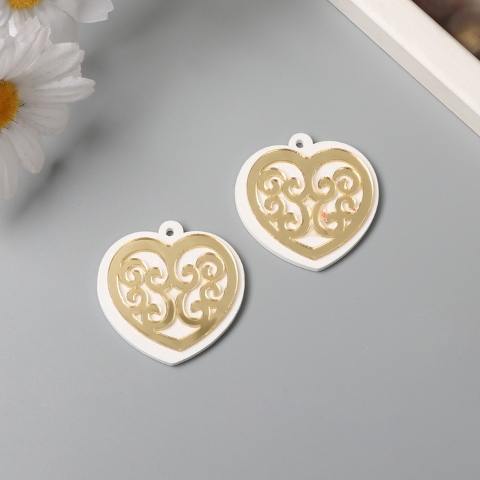 Декор для творчества дерево, пластик «Ажурное сердце», зеркальный, набор 2 шт., 4.2×4.3 см