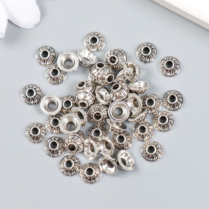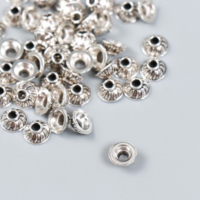 Декор шляпка для бусин диам 0.6 см металл «Абажур», серебро 0.7×0.7 см