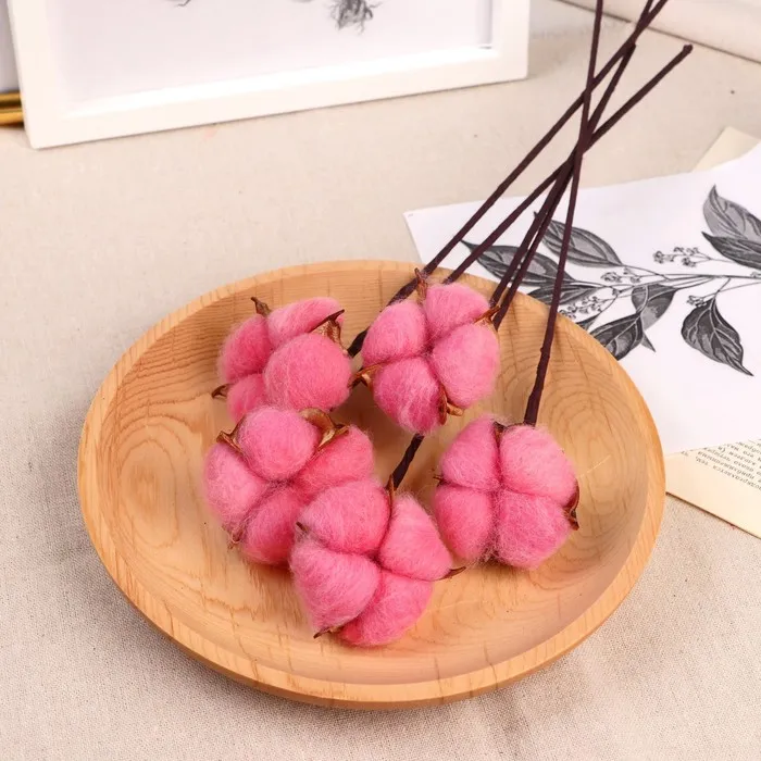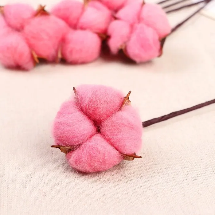 Эти розовые ветки с хлопковыми соцветиями добавят в интерьер мягкость и природное тепло. Гибкий металлический стебель и натуральные материалы создают эффект небрежной естественности — как будто только что сорвали в поле. Подходит для ваз, высоких горшков или композиций с сухоцветами.