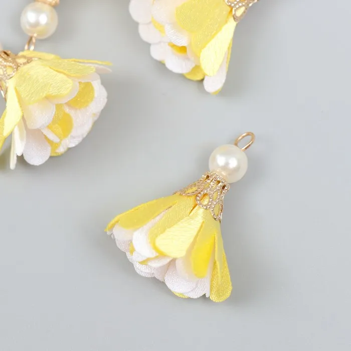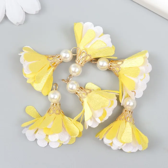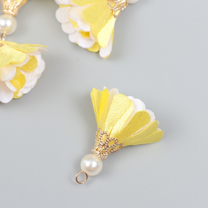 Декор текстиль «Цветок 2 с жемчужиной. Жёлтый и белый», набор 6 шт., 3 см