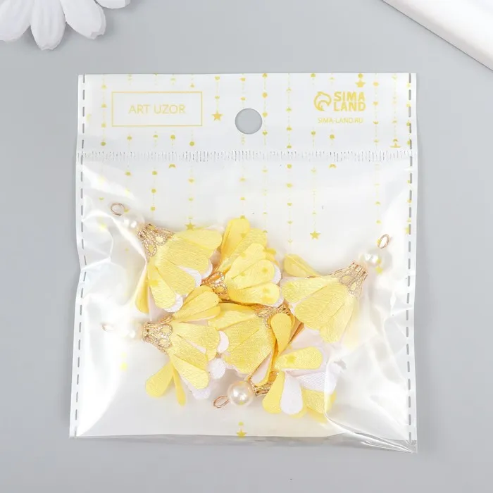 Декор текстиль «Цветок 2 с жемчужиной. Жёлтый и белый», набор 6 шт., 3 см — Характеристики