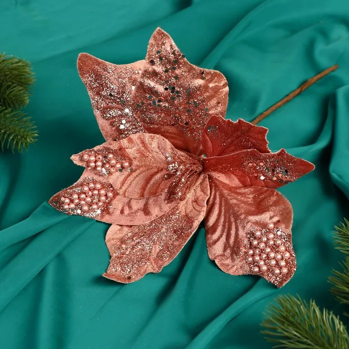Декор «Зимний цветок», блеск бусинки, 24×15 см, розовый — Характеристики