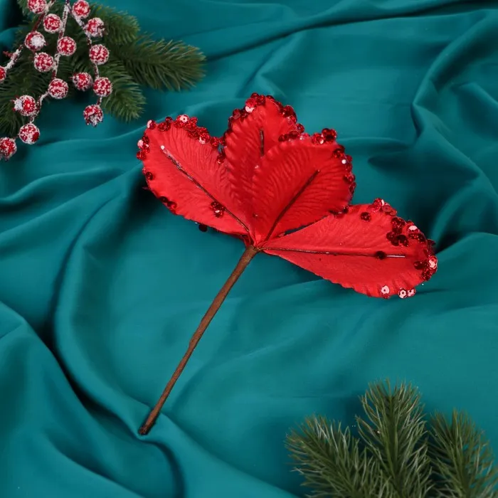 Декор «Зимний цветок», капельки края, 18×20 см, красный — Характеристики