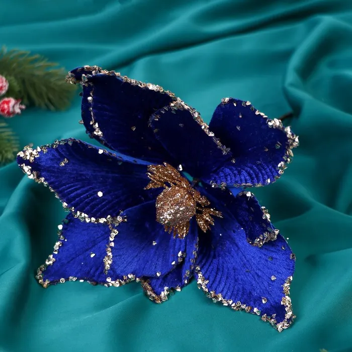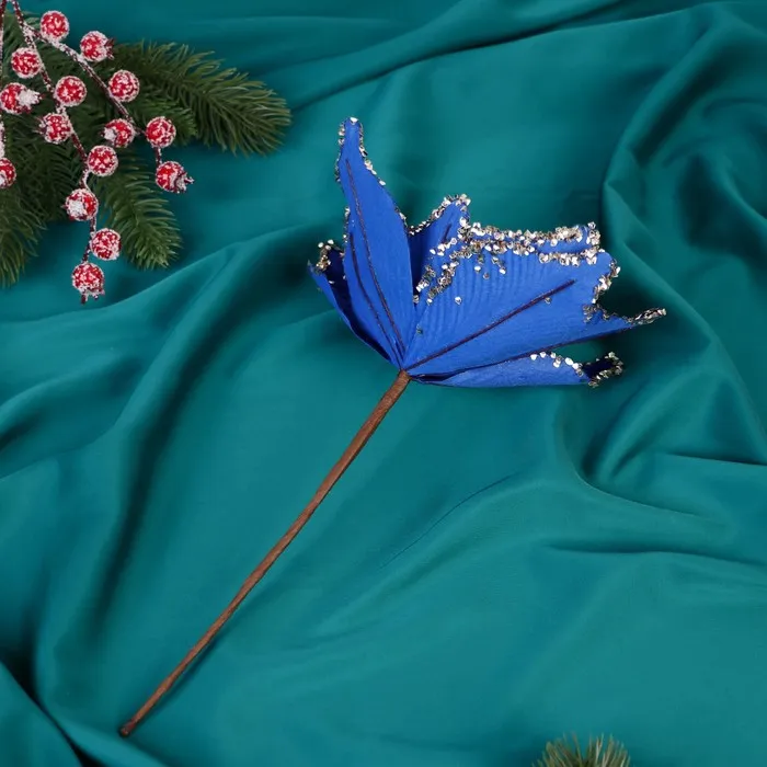 Декор «Зимний цветок», края блеск, 18×20 см, синий — Характеристики