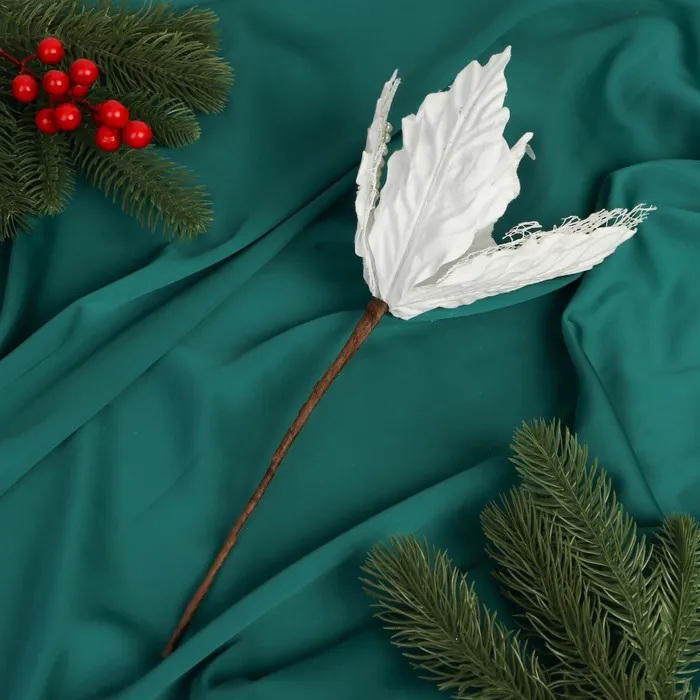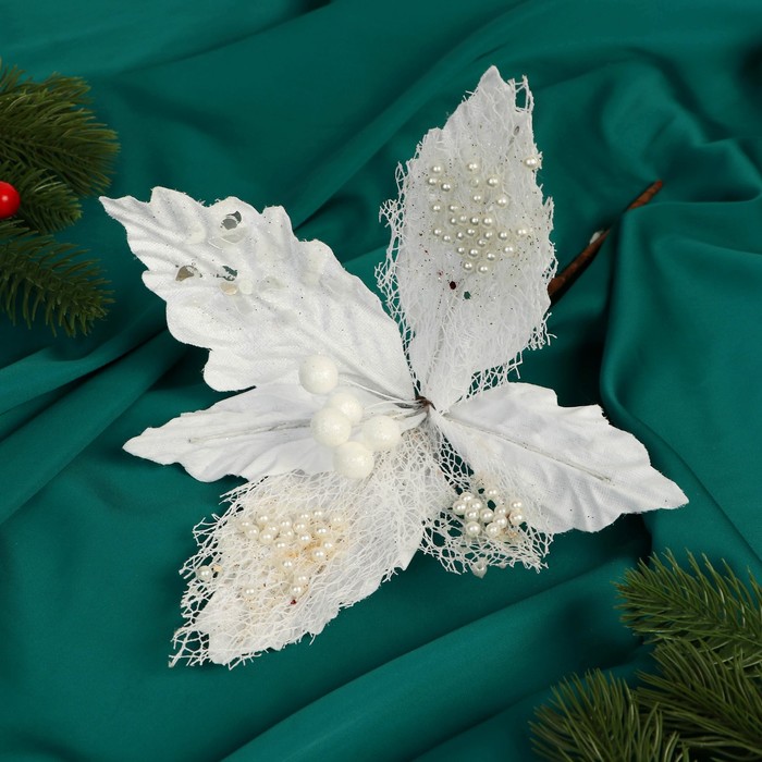 Декор «Зимний цветок», сеточка бусинки, 24×15 см, белый — Характеристики