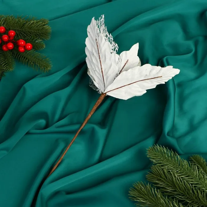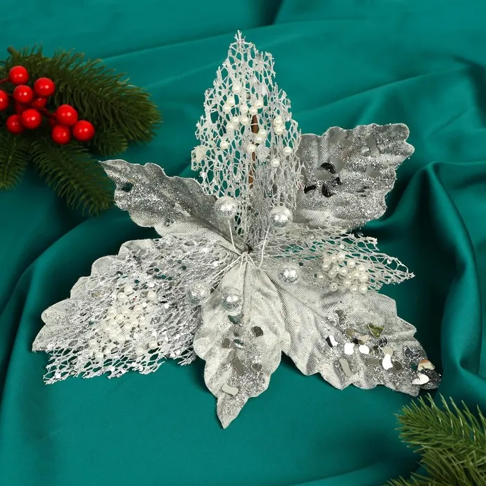 Декор «Зимний цветок», сеточка бусинки, 24×15 см, серебро — Характеристики