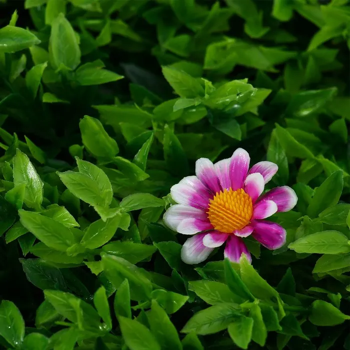 При транспортировке коврик мог примяться и зелень может выглядеть не такой объёмной и пушистой как на фото. Чтобы исправить ситуацию, разверните коврик, дайте ему отлежаться и попробуйте распушить зелень руками. Если это не помогло, опустите на 30 секунд коврик в горячую воду. После этой процедуры все листочки должны расправиться.