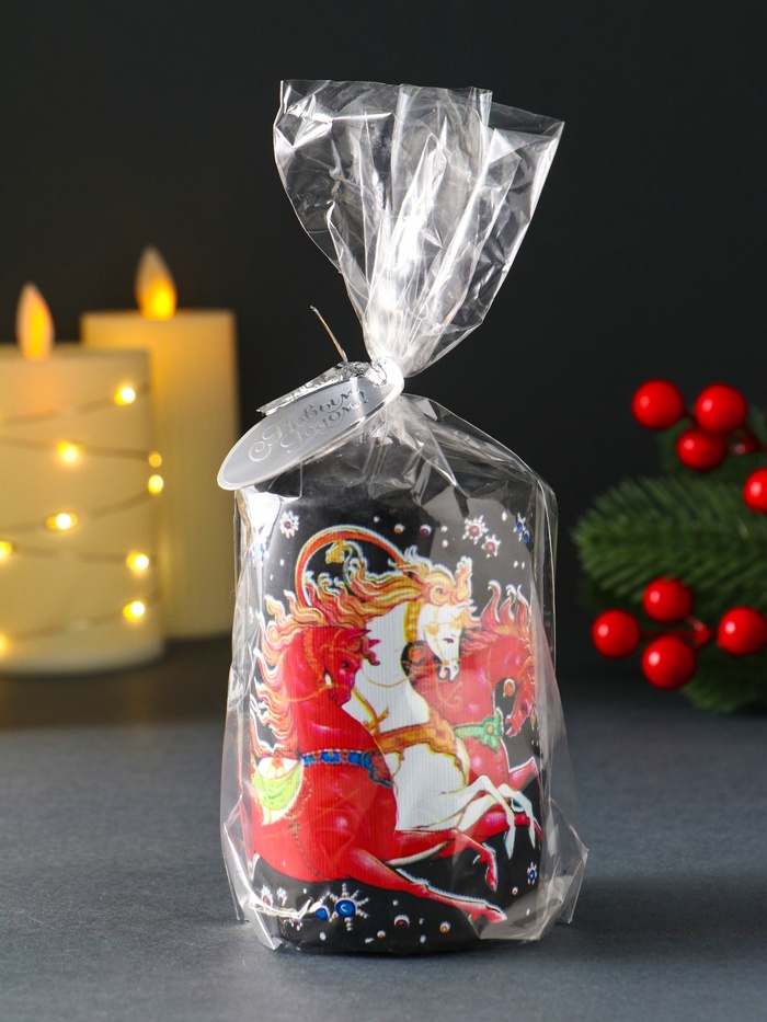Декоративная свеча новогодняя «Кони: Доставка подарков», 6×6×10 см — Характеристики
