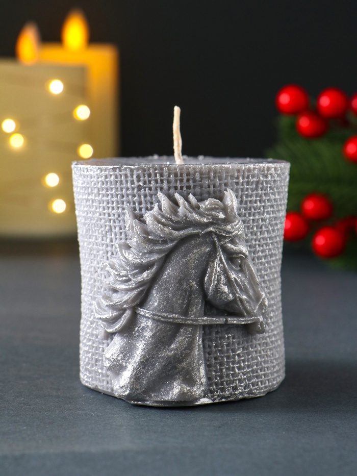 Декоративная свеча новогодняя «Лошадь Бохо», 70×75 мм, лак, серый — Характеристики