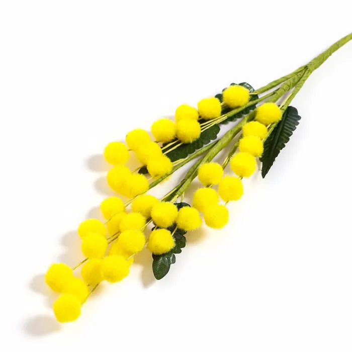 Декоративная веточка «Мимозы» станет прекрасным дополнением для любых флористических композиций и украшений интерьера. Сочетание пластика и текстиля яркого жёлтого цвета делает цветы универсальным элементом для любого интерьера. Цветы сохраняют свою красоту и форму надолго, добавляя естественный и элегантный акцент в любое пространство.