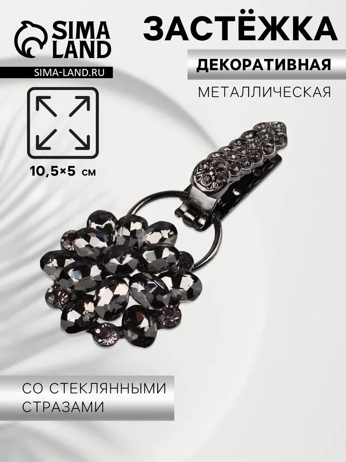 Декоративная застёжка «Стеклянный цветок», 10,5 × 5 см, цвет чёрный — Характеристики