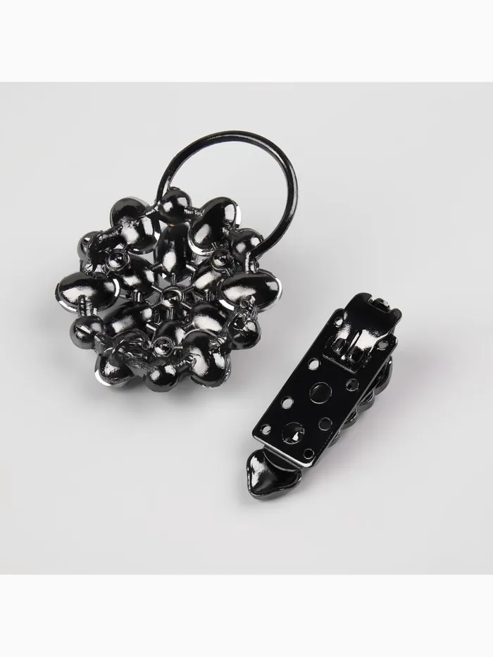 Декоративная застёжка «Стеклянный цветок», 10,5 × 5 см, цвет чёрный