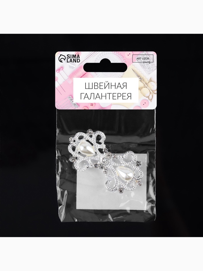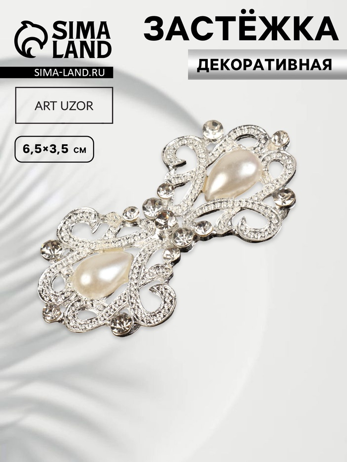 Декоративная застёжка «Узор», 6,5 × 3,5 см, цвет белый — Характеристики