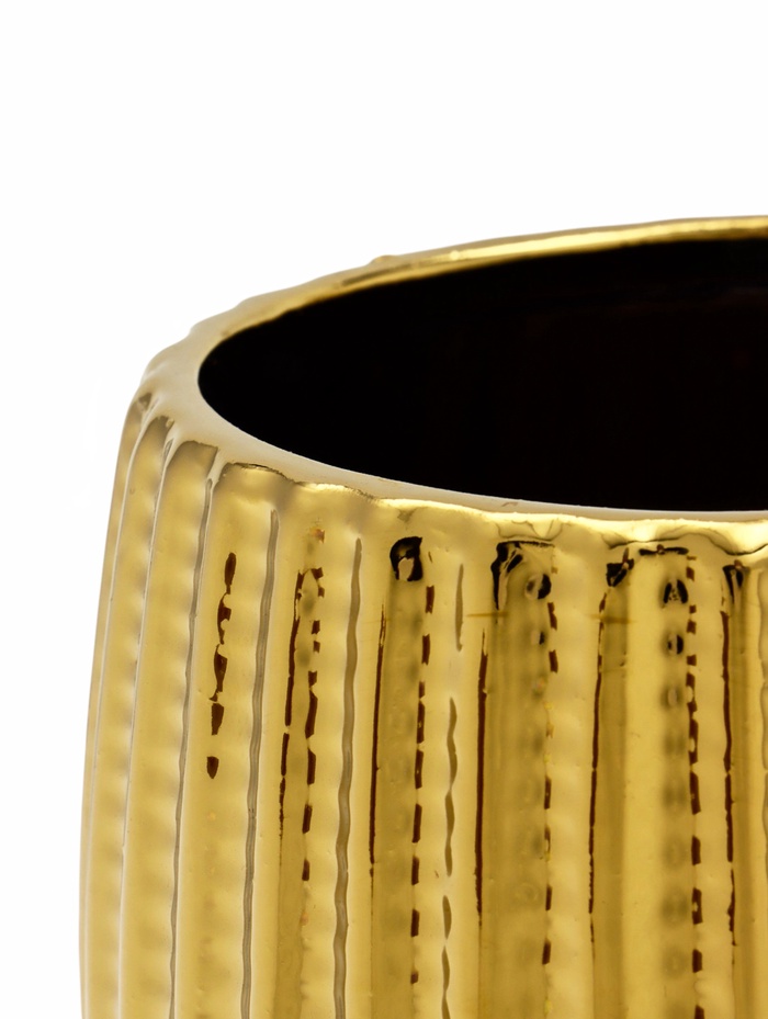 Декоративное кашпо «Кактус» — керамическое кашпо в форме суккулента. Золотистая поверхность создаёт эффект металлического покрытия. Объём 1,4 литра предназначен для размещения внутреннего горшка с растением.