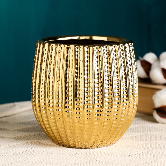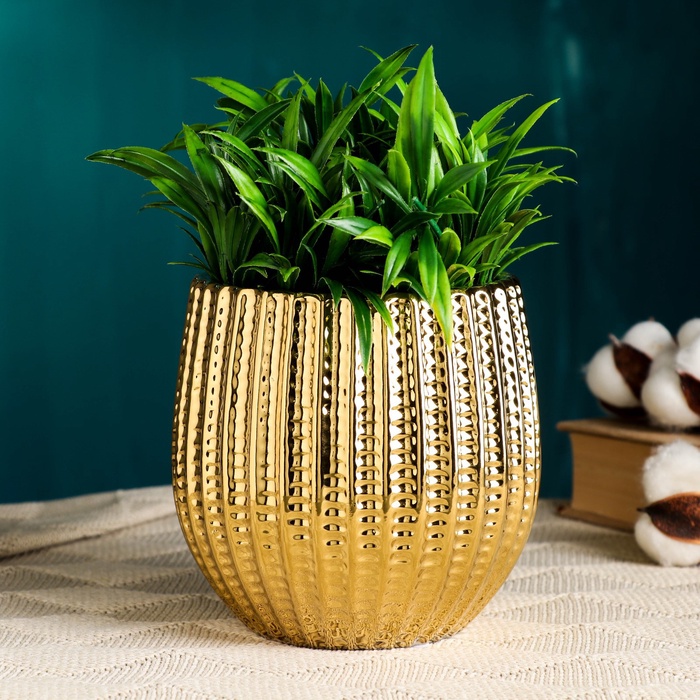 Декоративное кашпо для цветов «Кактус», 1.4 л, 14×12×12 см, керамическое, золотистое — Характеристики