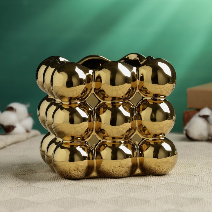 Декоративное кашпо для цветов «Люмьер», 1.1 л, 13×13 см, керамика, золотистое — Характеристики
