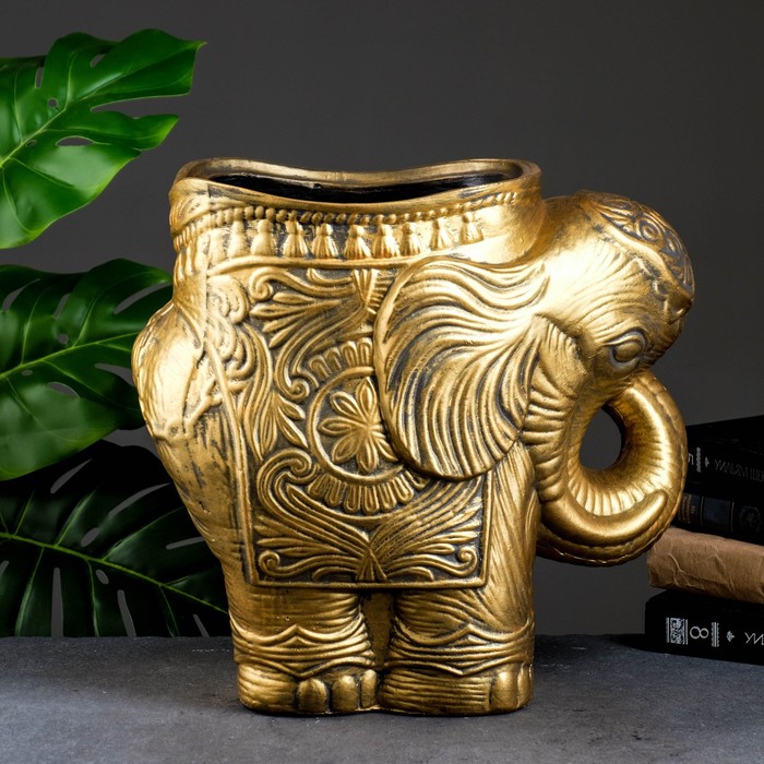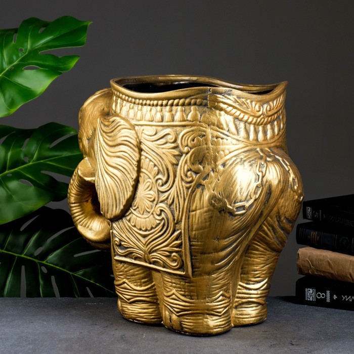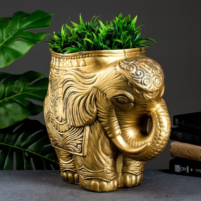 Декоративное кашпо для цветов «Слон», 6 л, 35×22×35 см, гипс, золотистый — Характеристики