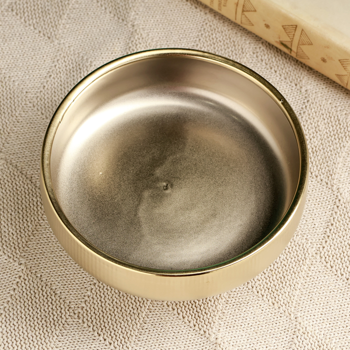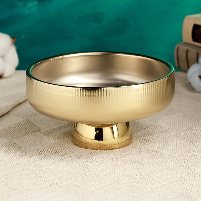 Декоративное кашпо - подставка «Страйпс», 15×15×8 см, керамическое, золотистое — Характеристики