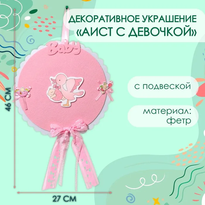 Декоративное украшение (подвеска) "Аист с девочкой" 27х27х46 см, розовый — Характеристики