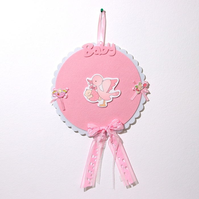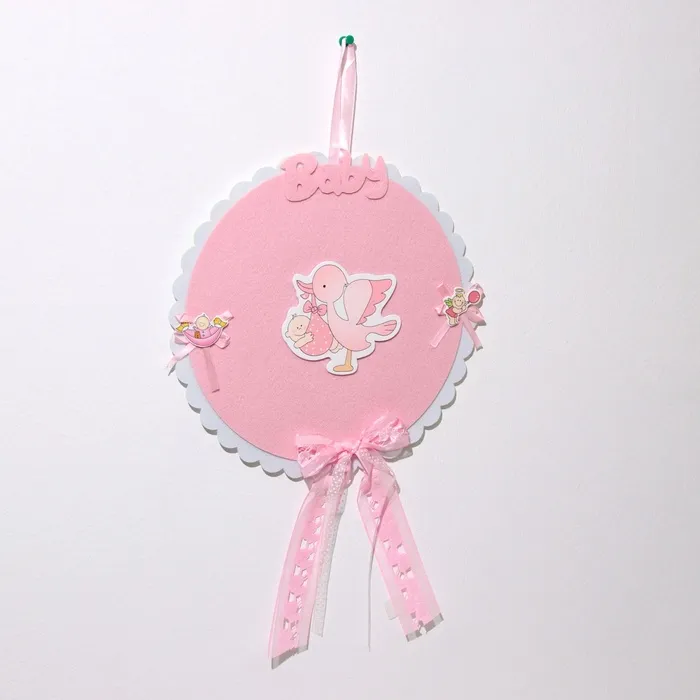 Декоративное украшение (подвеска) "Аист с девочкой" 27х27х46 см, розовый