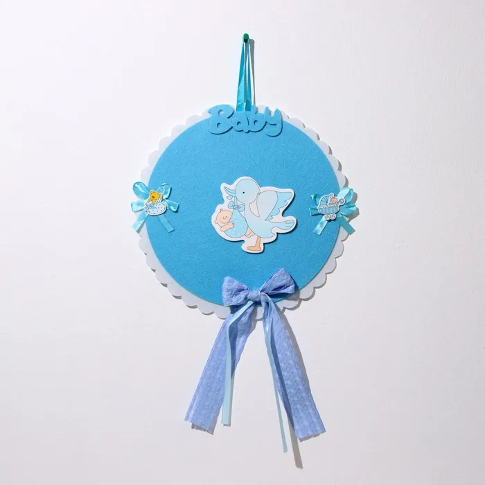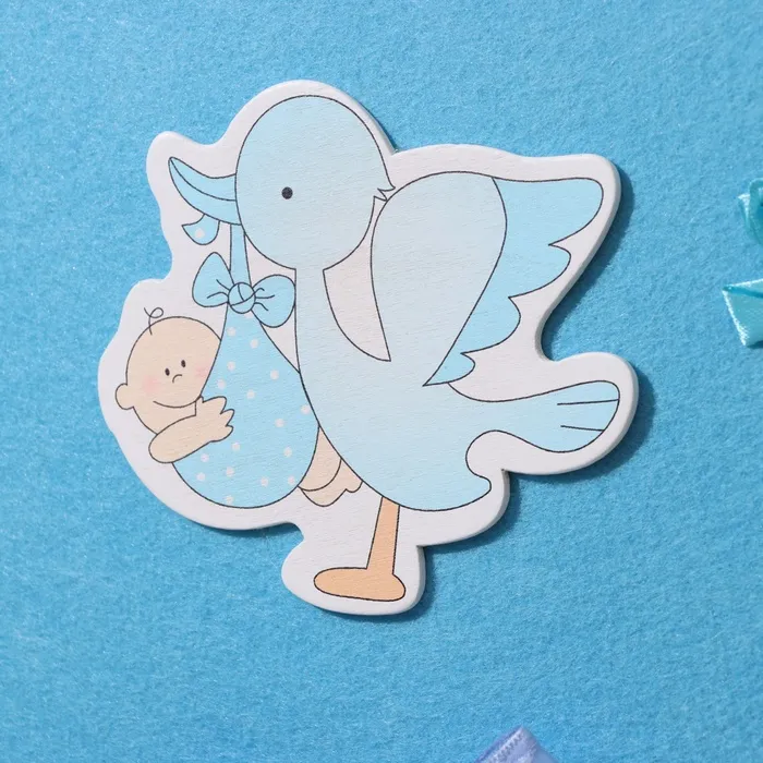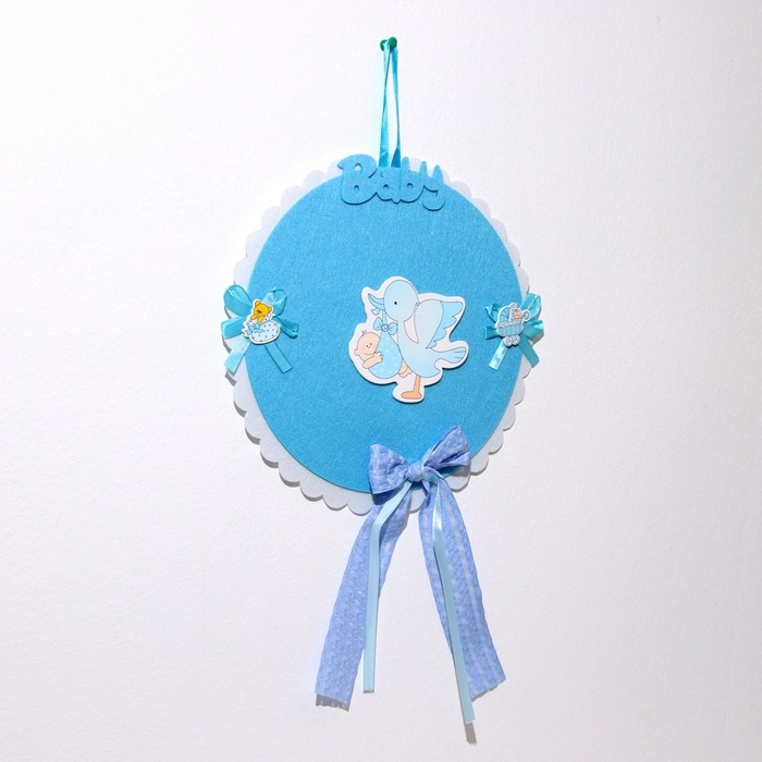 Декоративное украшение (подвеска) "Аист с мальчиком" 27х27х46 см, голубой — Характеристики