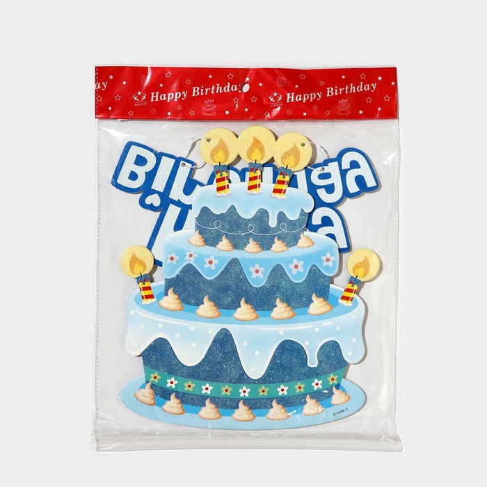 Декоративное украшение (подвеска) "Happy Birthday" 42х26 см, цв. голубой — Характеристики