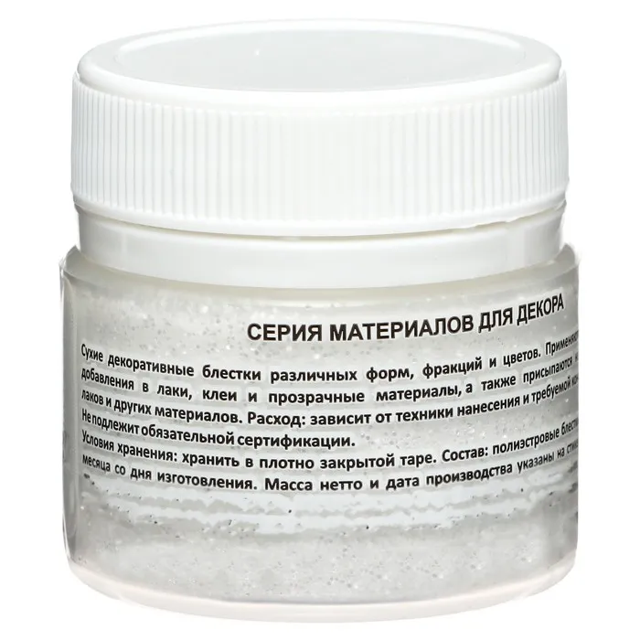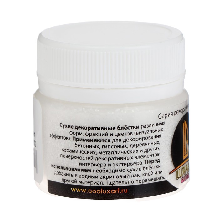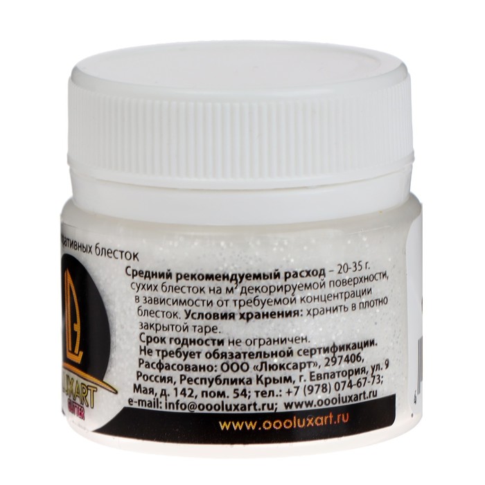 Декоративные блёстки LUXART LuxGlitter (сухие), 20 мл, размер 0.2 мм, белые — Характеристики