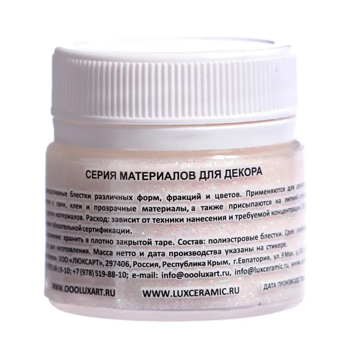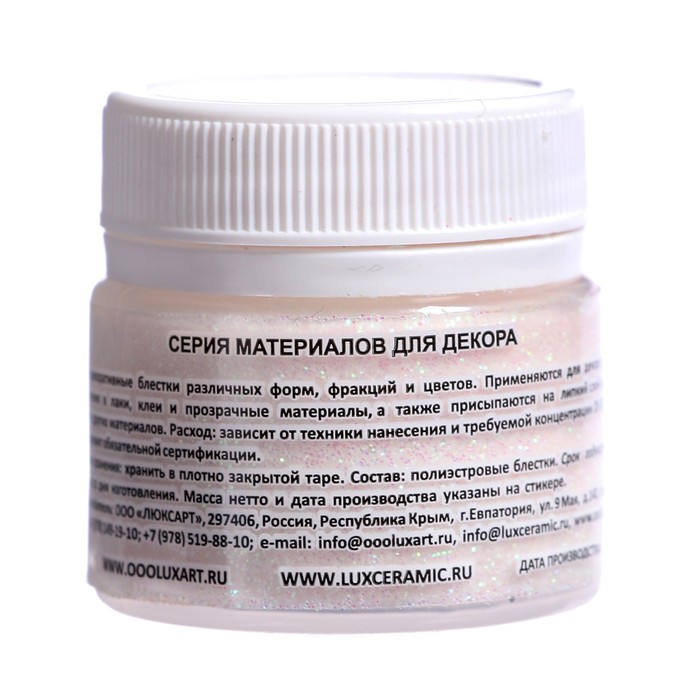 Декоративные блёстки LUXART LuxGlitter (сухие), 20 мл, размер 0.2 мм, голографические белые — Характеристики