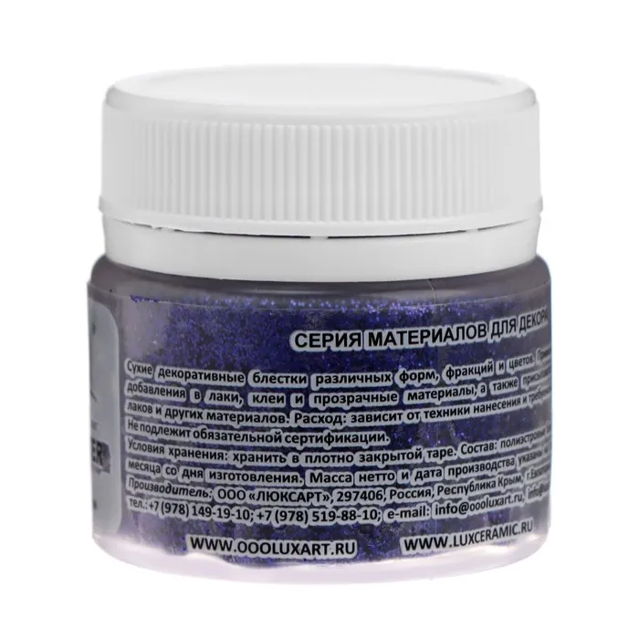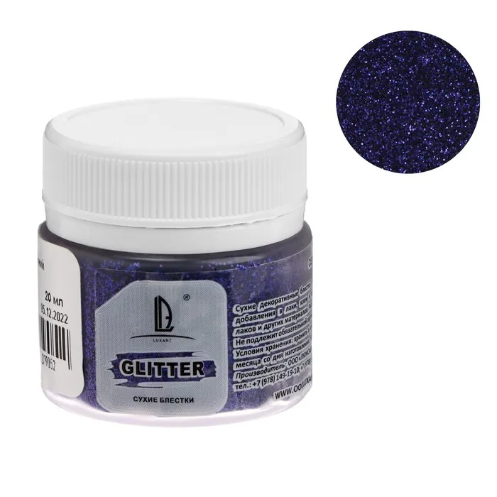 Декоративные блёстки LUXART LuxGlitter (сухие), 20 мл, размер 0.2 мм, синий — Характеристики