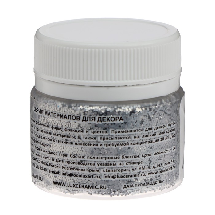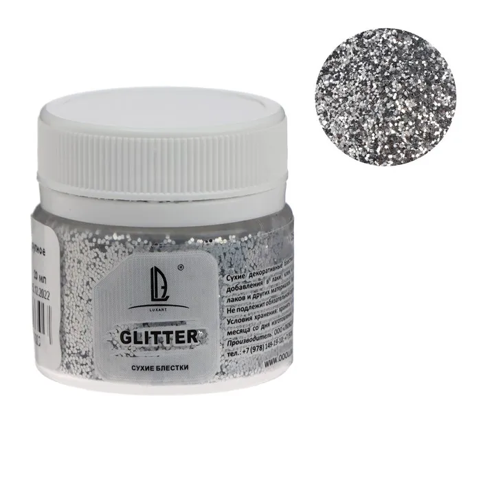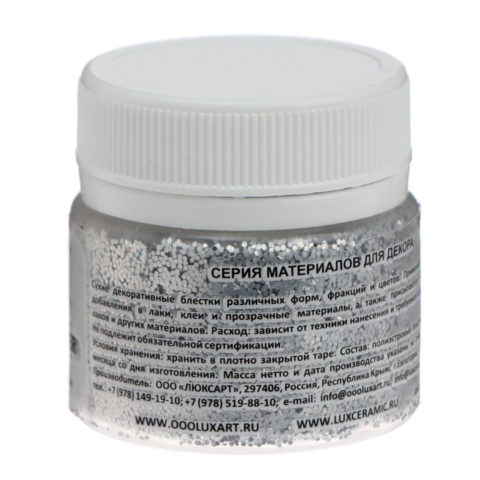 Декоративные блёстки LUXART LuxGlitter (сухие), размер 0,4 мм, 20 мл, серебро крупное — Характеристики
