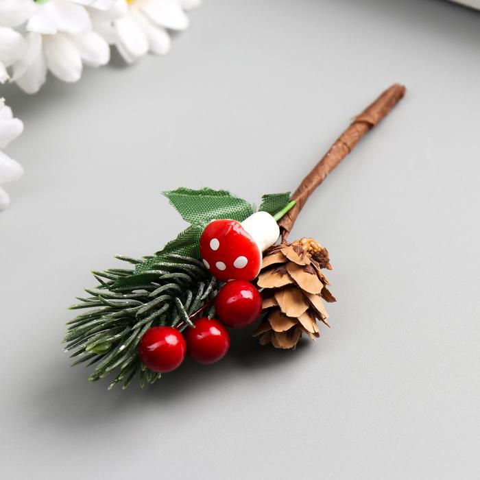 Декор для творчества "Веточка ели с шишкой и грибочком" 13 см