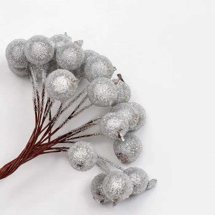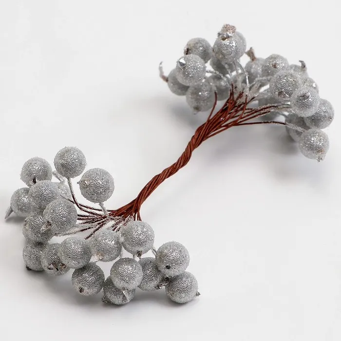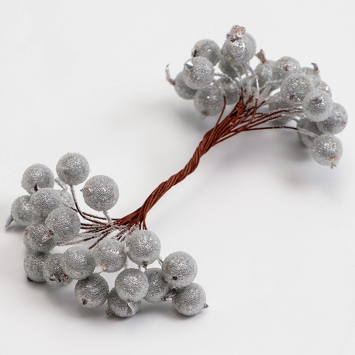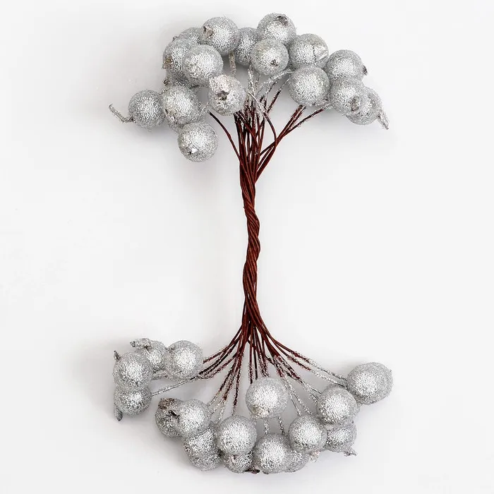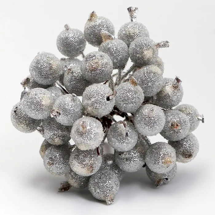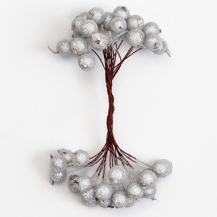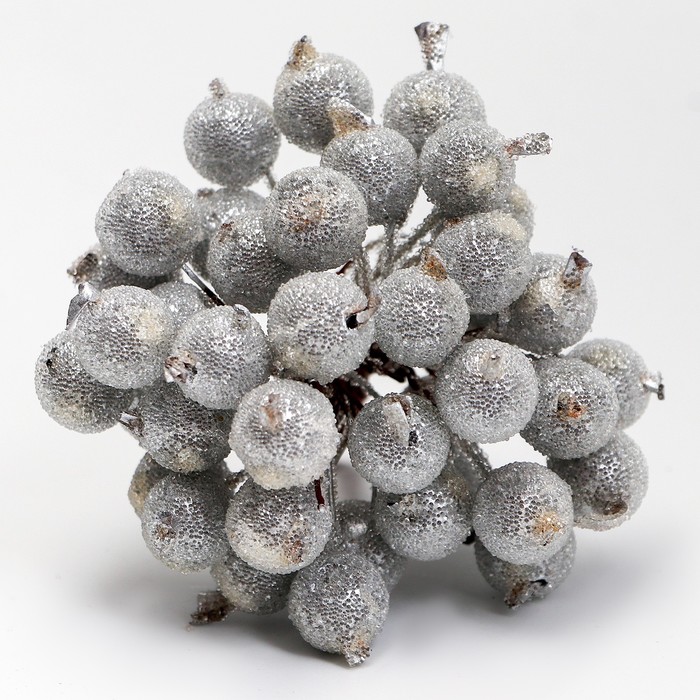 Декоративные ягодки, серебряные, 7 × 6 × 7 см, 40 ягод