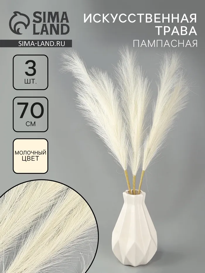 Сухоцветы искусственные «Пампасная трава», 70 см, 3 шт., молочный