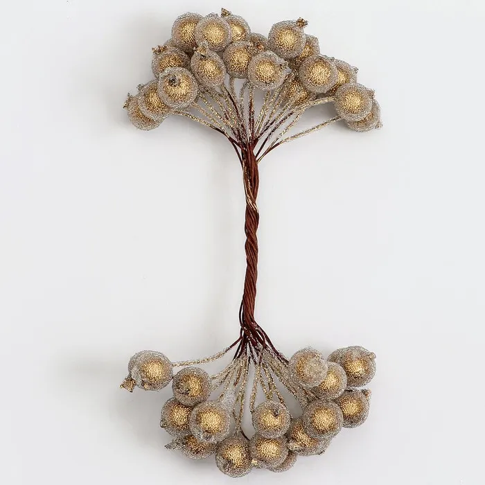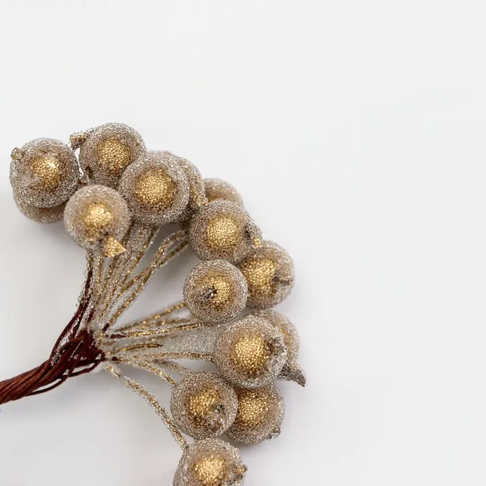 Декоративные ягодки, золотого цвета, 7 × 6 × 7 см, 40 ягод