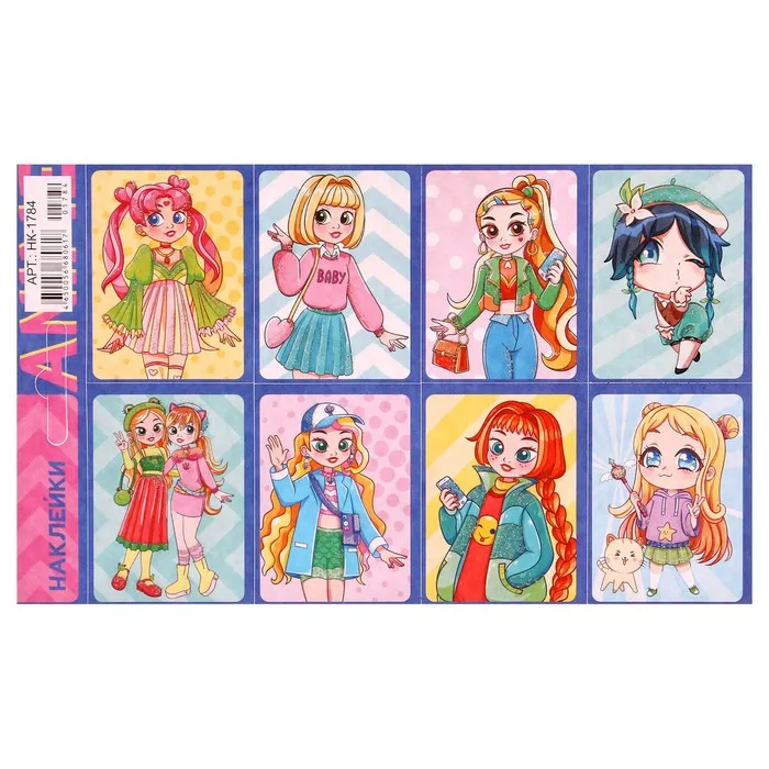 Декоративные наклейки «Аниме. Модные подружки» глиттер, 16×9.7 см — Характеристики