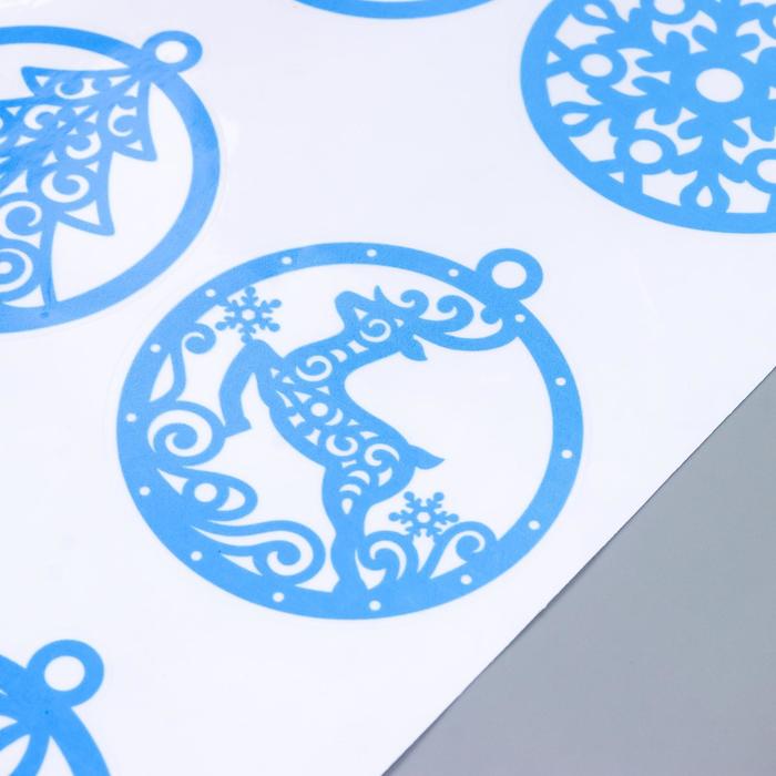 Декоративные наклейки новогодние «Подвески: ёлочные игрушки голубые», прозрачный фон, 30×50 см — Характеристики