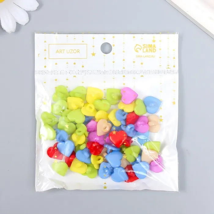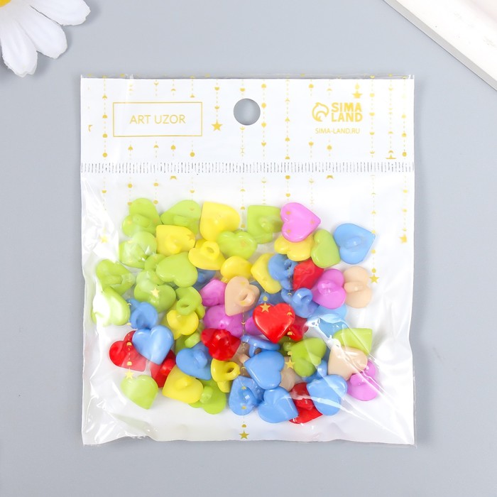 Декоративные пуговицы на ножке набор 60 шт. «Арт Узор. Цветные сердечки», пластик, 1.2×1.2 см — Характеристики
