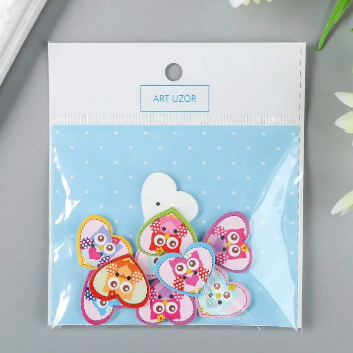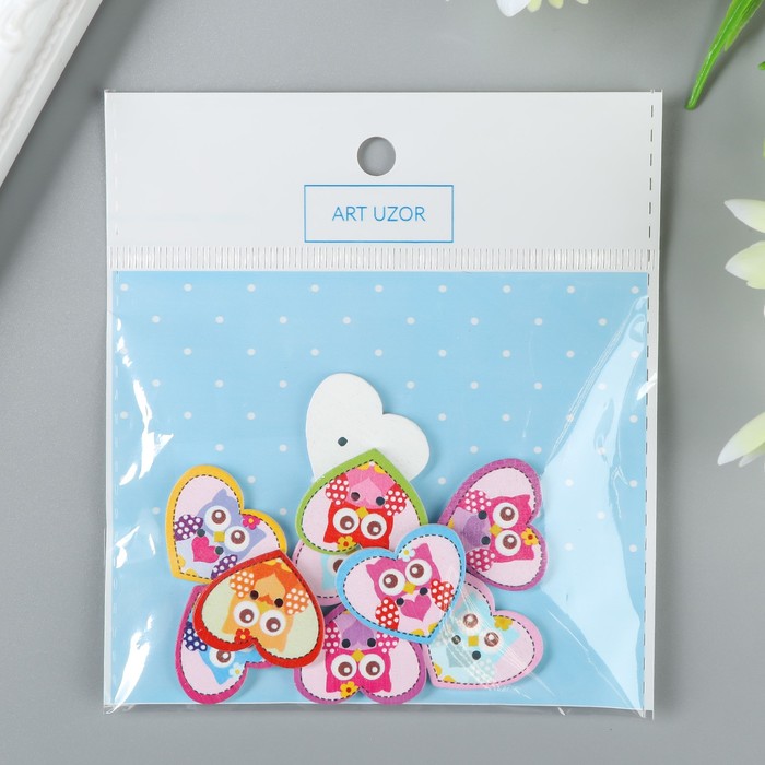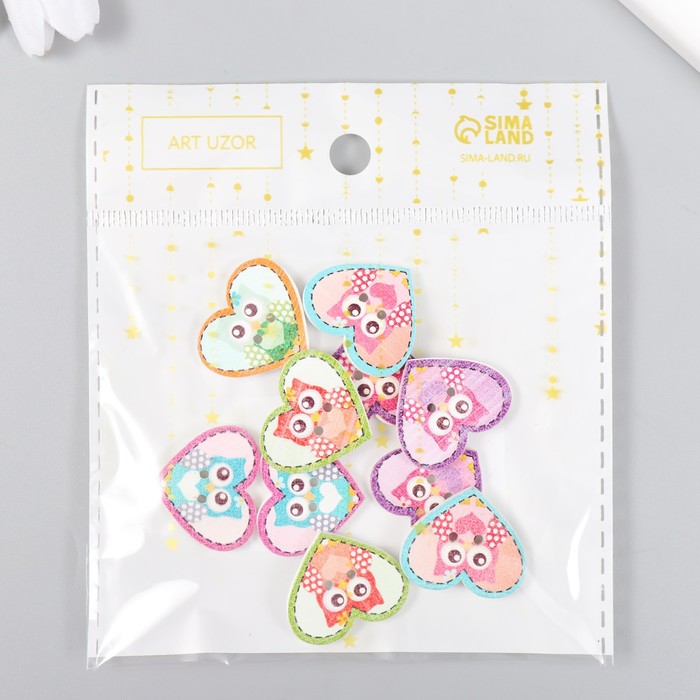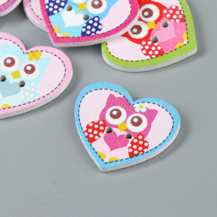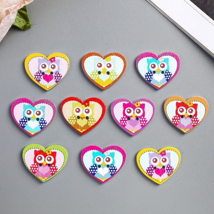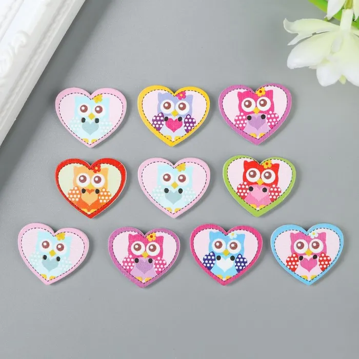 Декоративные пуговицы набор 10 шт. «Арт Узор. Совушка в сердечке», дерево, 2.4×2 см, МИКС — Характеристики