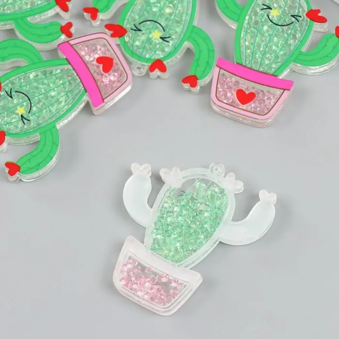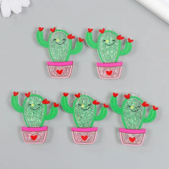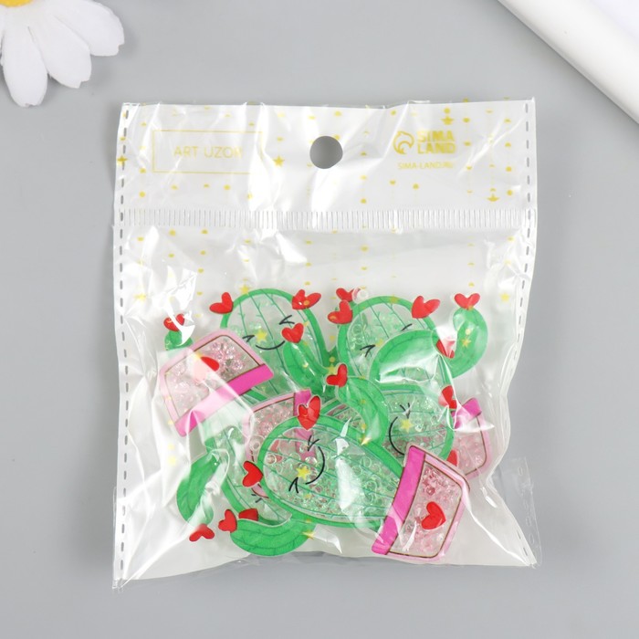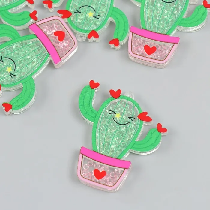 Декоративный элемент для творчества шейкер «Арт Узор. Кактус в горшке с сердечками с бисером», акрил, 0.5×4.8×4.9 см — Характеристики