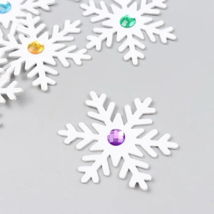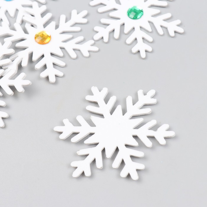 Декоративный элемент для творчества «Снежинка со стразой», набор 6 шт., белая, 6.5 см, фоамиран