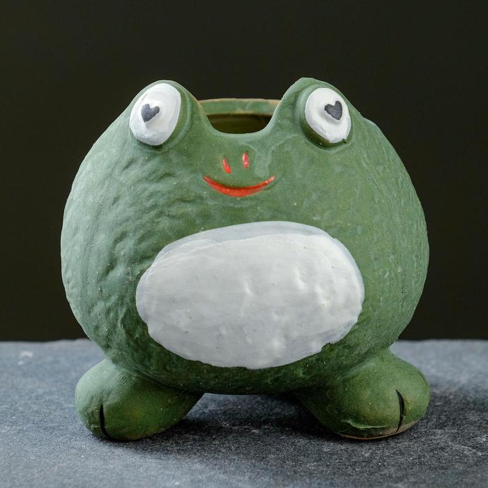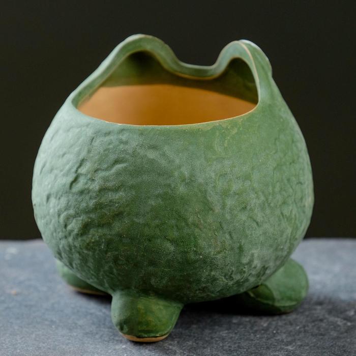 Декоративный горшок для цветов «Подружка - лягушка», 250 мл, 9×8×9 см, керамический, зелёный — Характеристики
