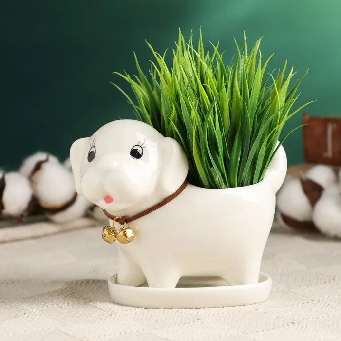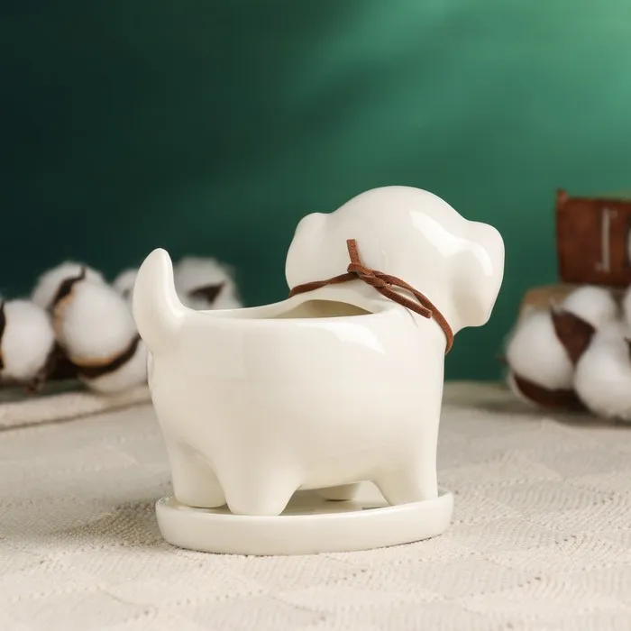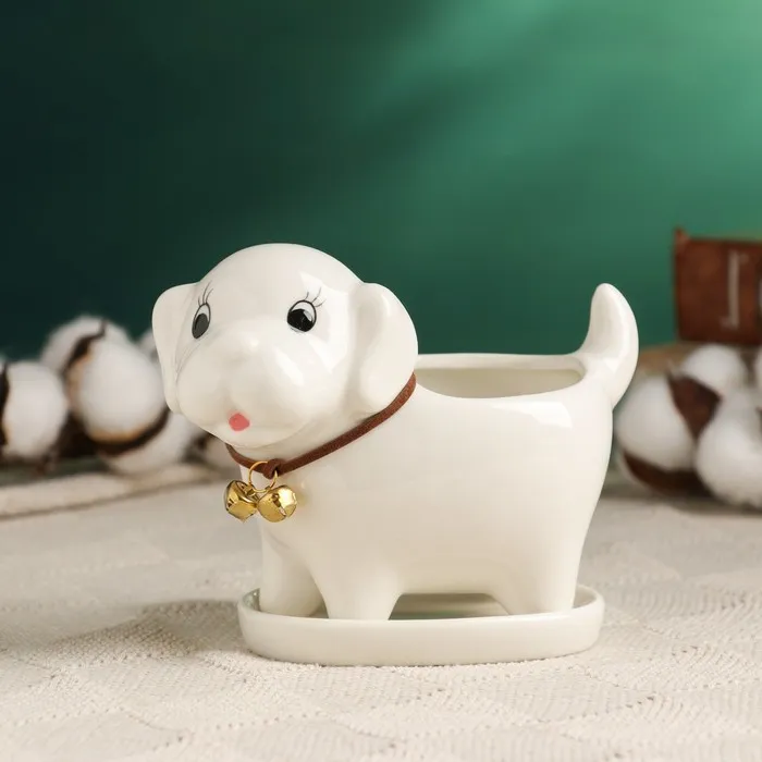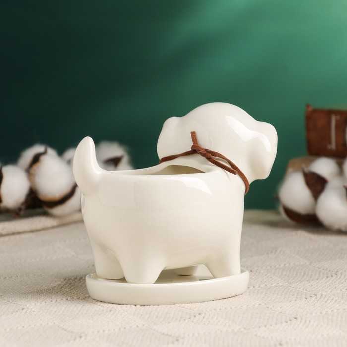 Декоративный горшок для цветов «Щенок», 200 мл, 13×7×10 см, керамический, белый — Характеристики