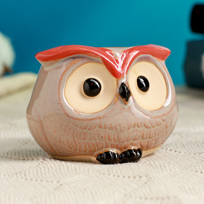 Керамический горшок «Совёнок», 0.15 л — это миниатюрный сосуд для растений с фигурным декором. Изображение совы придаёт композиции уютный и характерный облик.