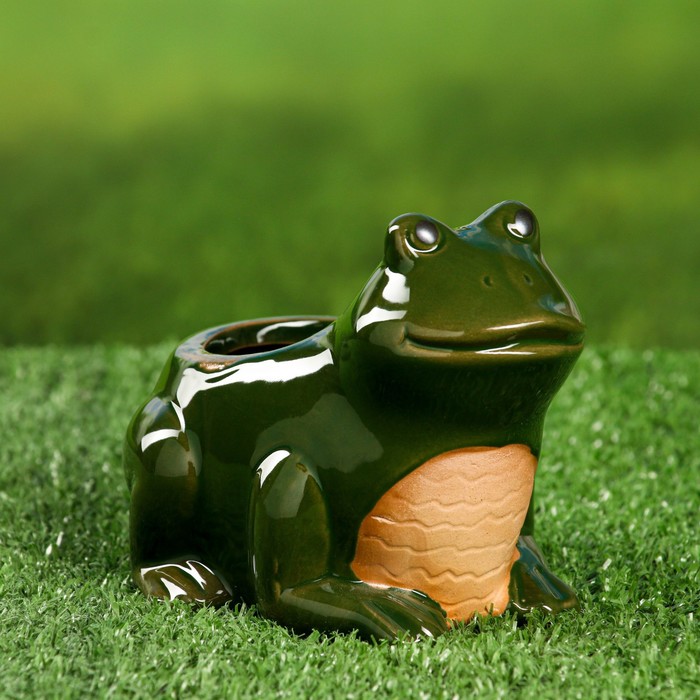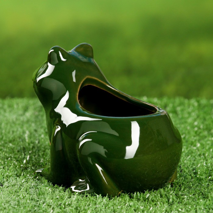 Декоративный горшок «Лягушка», керамический, 250 мл, 12×10×9 см, зелёный — Характеристики