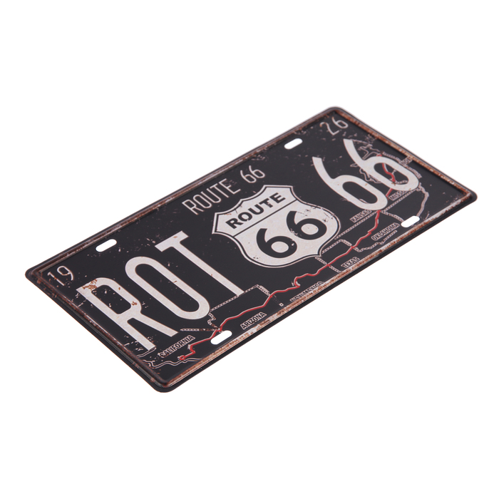 Декоративный номерной знак “Маршрут 66” – это стильный и уникальный аксессуар для автомобиля или интерьера, который напомнит о легендарном Шоссе 66. Этот знак размером 30х15 см выполнен в виде классического американского номерного знака с изображением маршрута 66 на фоне карты США.